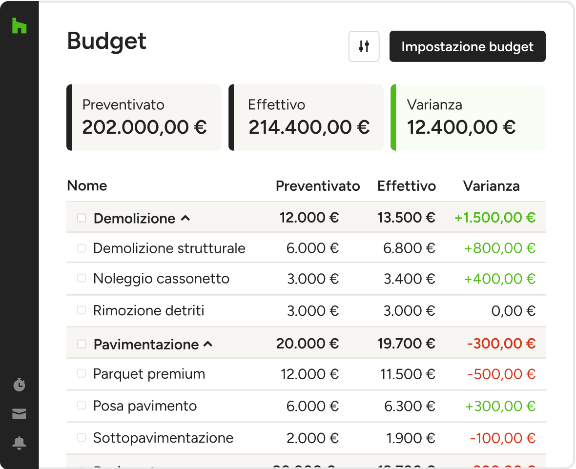 Ottieni una visione della redditività dei progetti in corso, scopri dove sono state applicate tariffe insufficienti e confronta le spese previste con quelle effettive grazie alla gestione integrata del budget.