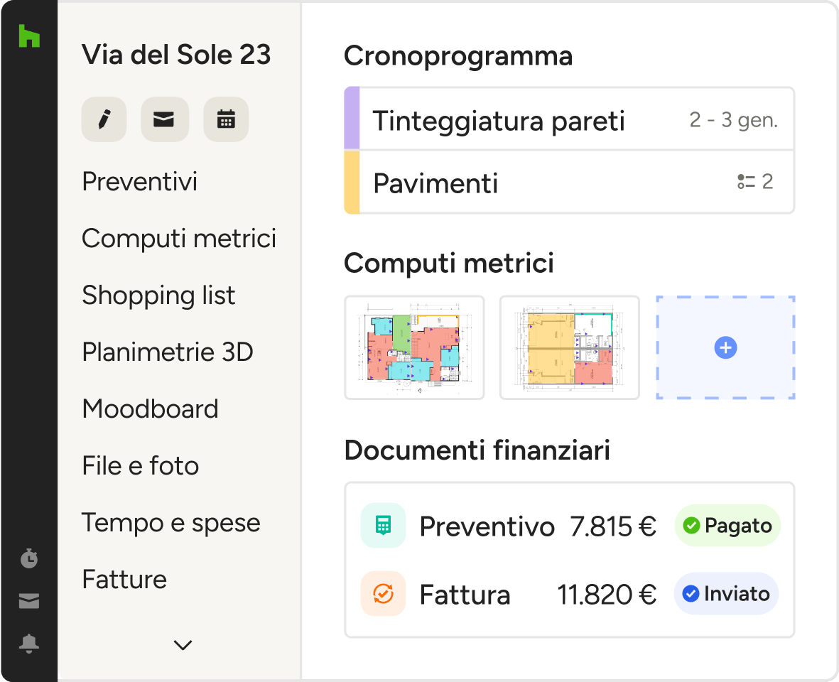 Sia che ti trovi in cantiere o con un cliente, puoi accedere a tutte le utili funzionalità di Houzz Pro in qualsiasi momento.