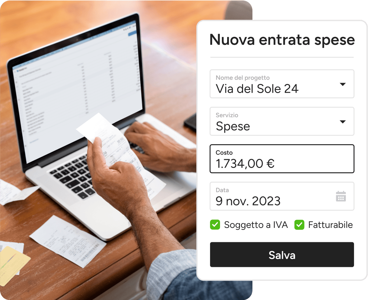 La nostra app mobile ti offre tutte le funzionalità necessarie per tener traccia di tempo e spese, e inviare fatture anche da remoto. In questo modo puoi tenere le spese veramente sotto controllo.
