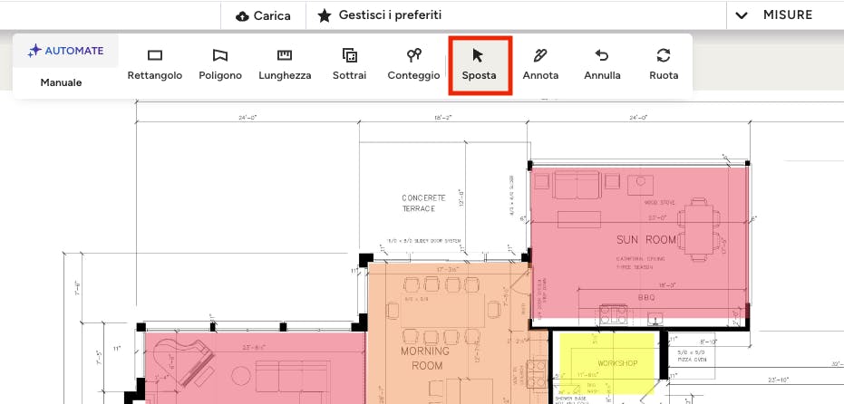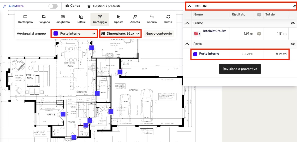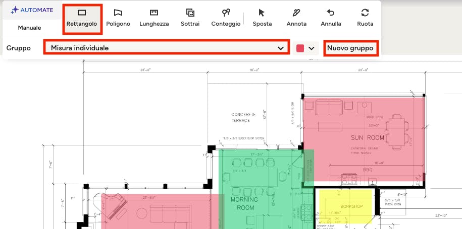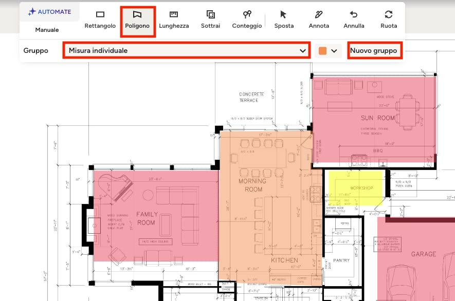 Se desideri risparmiare tempo nella misurazione delle aree, puoi utilizzare la tecnologia AI AutoMate per completarle. Leggi AutoMate AI per computi metrici per saperne di più.
