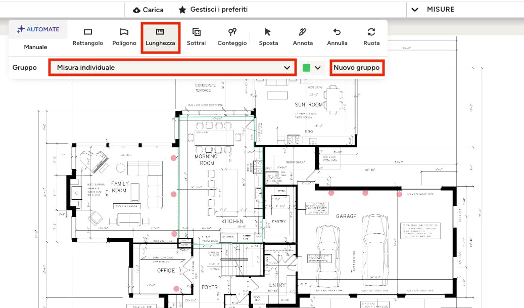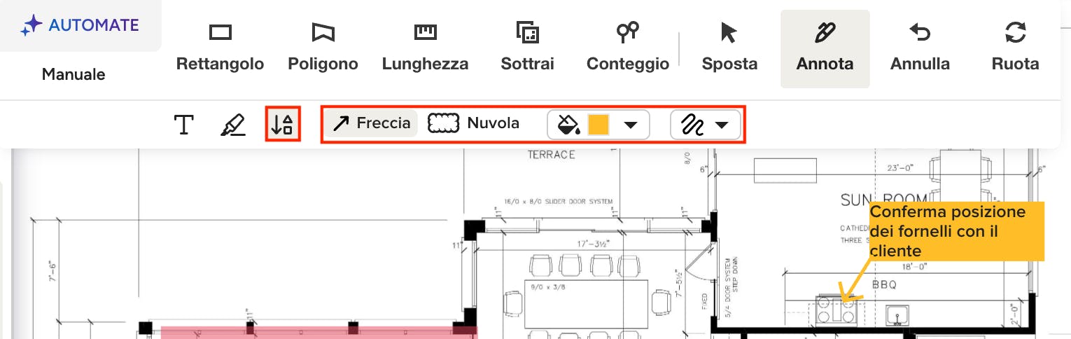 Se desideri risparmiare tempo nella misurazione delle lunghezze, puoi utilizzare la tecnologia AI AutoMate per completarle. Leggi AutoMate AI per computi metrici per saperne di più.