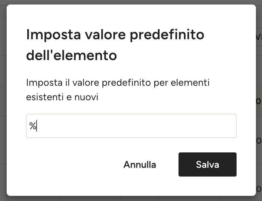 4. Se desideri rimuovere il valore predefinito, clicca i tre puntini nella colonna "Margine di ricarico" e seleziona "Ripristina valore predefinito".