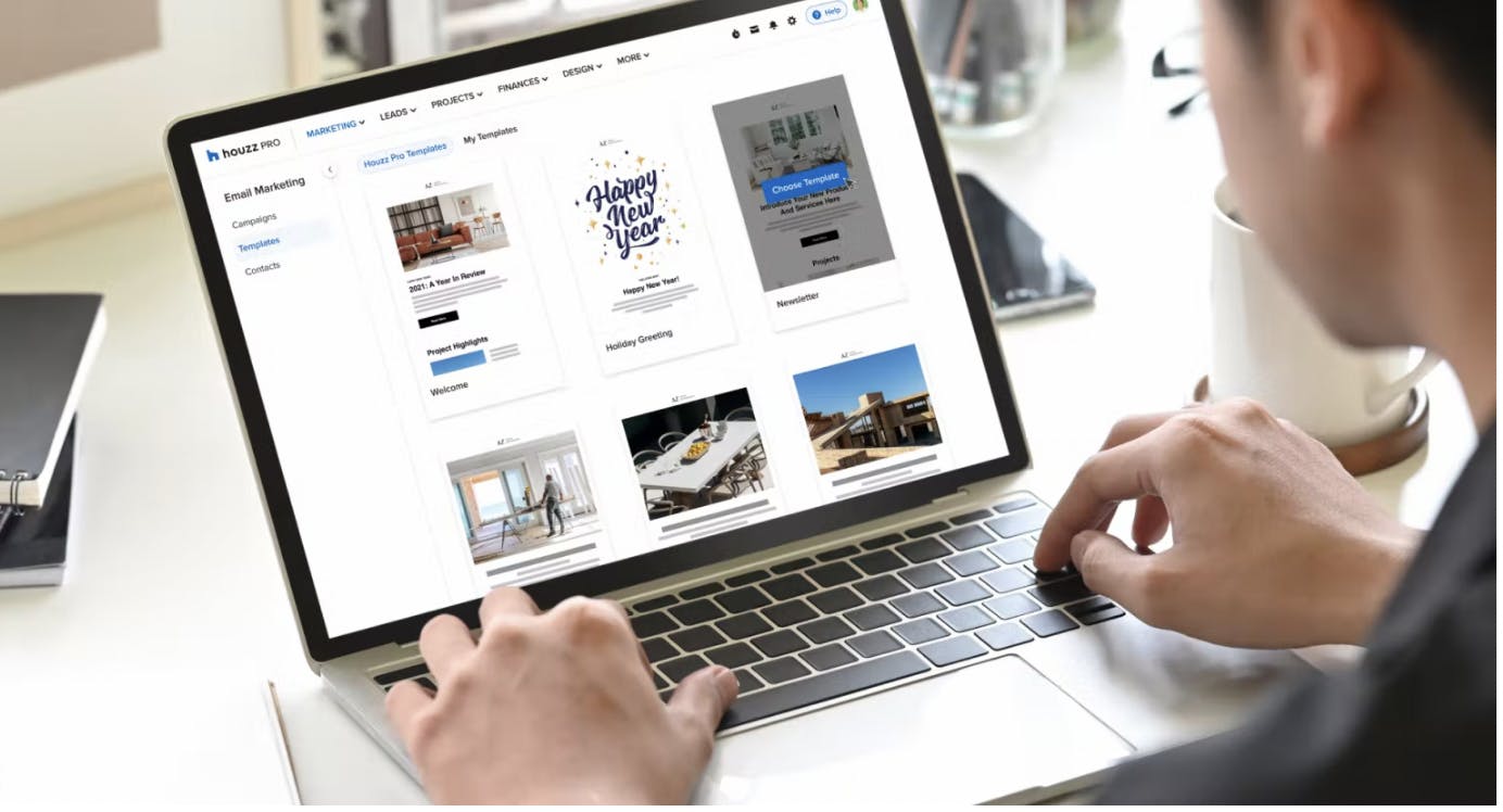 In realtà esistono molti strumenti di marketing facili da usare e poco costosi per aiutare le imprese di costruzione e i progettisti di interni ad acquisire nuovi clienti. Ad esempio, come dice Juan Alatore di West Oaks Design: «Lo strumento di e-mail marketing di Houzz Pro è un'ottima soluzione per chi non ha un team dedicato al marketing».