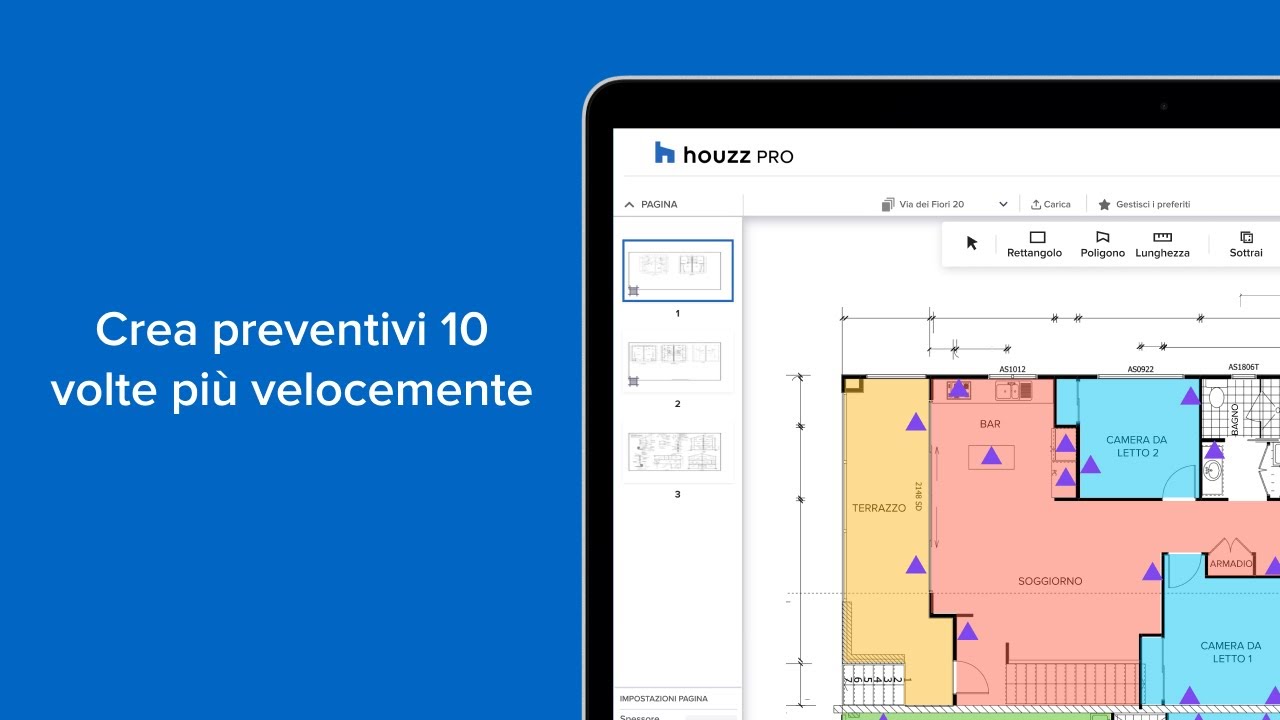In un'epoca caratterizzata dalle consegne in giornata e da ogni tipo di gratificazione immediata, i clienti si aspettano estrema rapidità in ogni fase di un progetto. Se impieghi due o tre giorni per rispondere a una richiesta di informazioni o per inviare un preventivo, potresti rischiare di perdere un incarico, anche nel caso in cui la tua azienda fosse la più qualificata per il lavoro. Il modo più efficace per distinguersi dalla concorrenza è rispondere ai potenziali clienti il più rapidamente possibile senza sacrificare la precisione. E la soluzione arriva ancora una volta dalla tecnologia. Lo strumento Computo metrico di Houzz Pro consente di prendere le misure e disegnare le planimetrie in modo rapido e preciso, direttamente dal tuo smartphone.