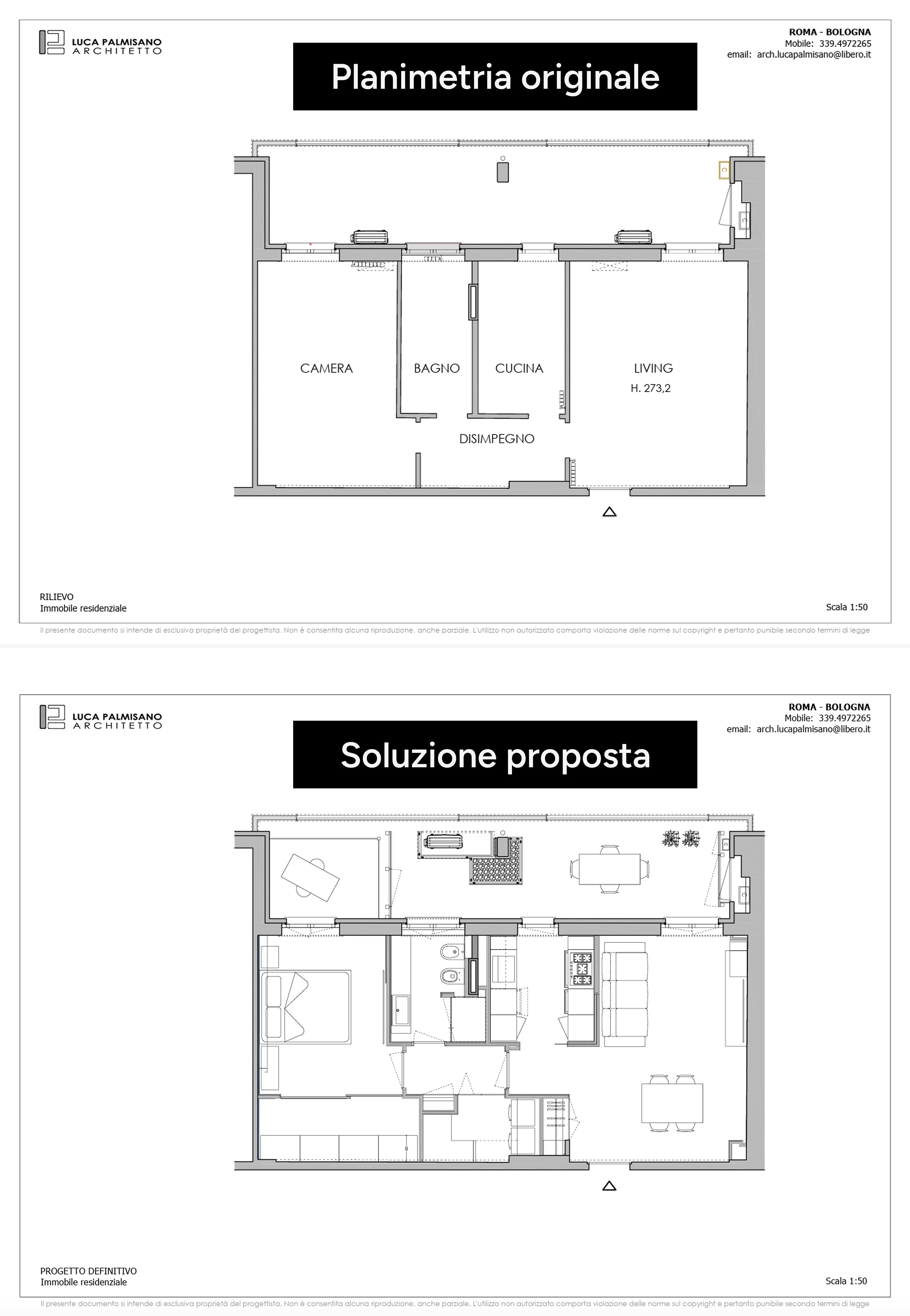 La soluzione da me proposta e stata quella di avere una zona giorno più aperta possibile, con una cucina open space integrata nella zona living, in modo che l'illuminazione naturale della finestra della cucina potesse contribuire a rendere più luminosa anche la zona pranzo-tv.