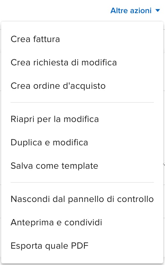 Ora questo è possibile: puoi apportare le modifiche che vuoi, anche dopo che un preventivo è già stato approvato. E puoi anche annullare le fatture emesse. Leggi questo articolo per sapere come annullare le fatture.